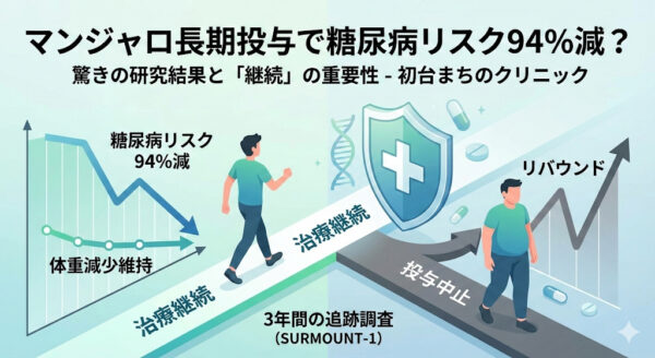今日は、GLP-1受容体作動薬(マンジャロ)に関する、非常に注目すべき最新の研究結果と、そこから見えてきた「治療継続の大切さ」についてお話しします。