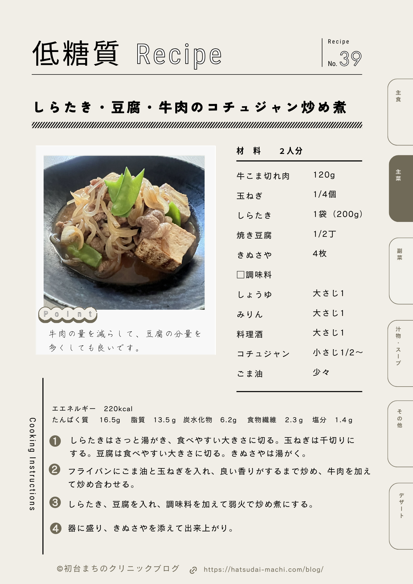 1. No.38しらたき・豆腐・牛肉のコチュジャン炒め煮 しらたき・豆腐・牛肉のコチュジャン炒め煮